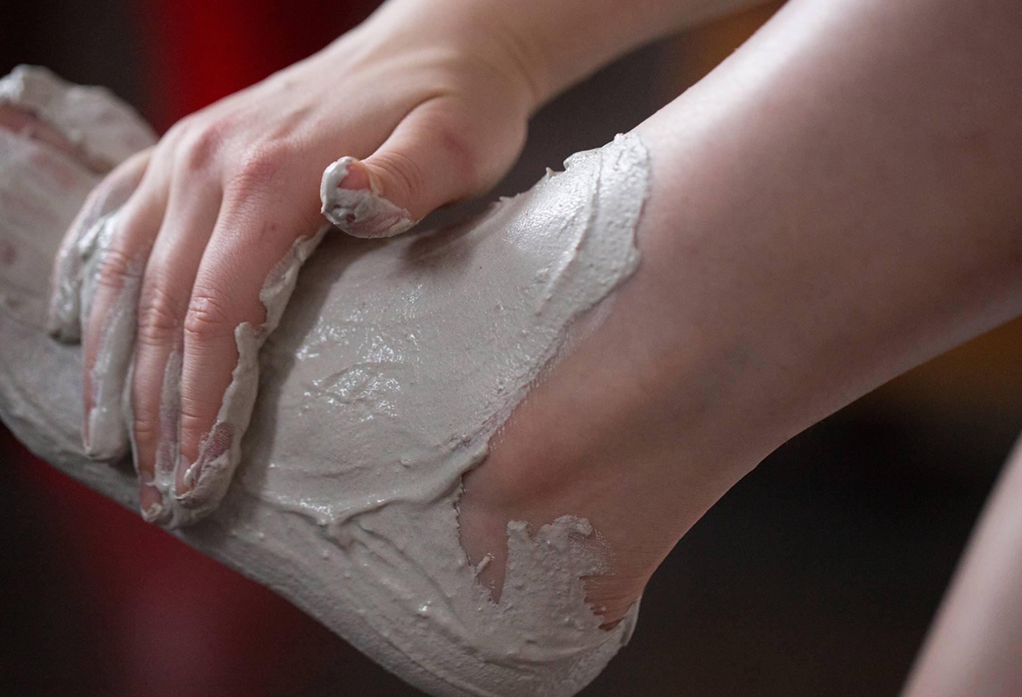 Apply a thick coating all over your feet. Wrap them in plastic (optional) to keep the product from drying out. Leave for 10 minutes before rinsing off.