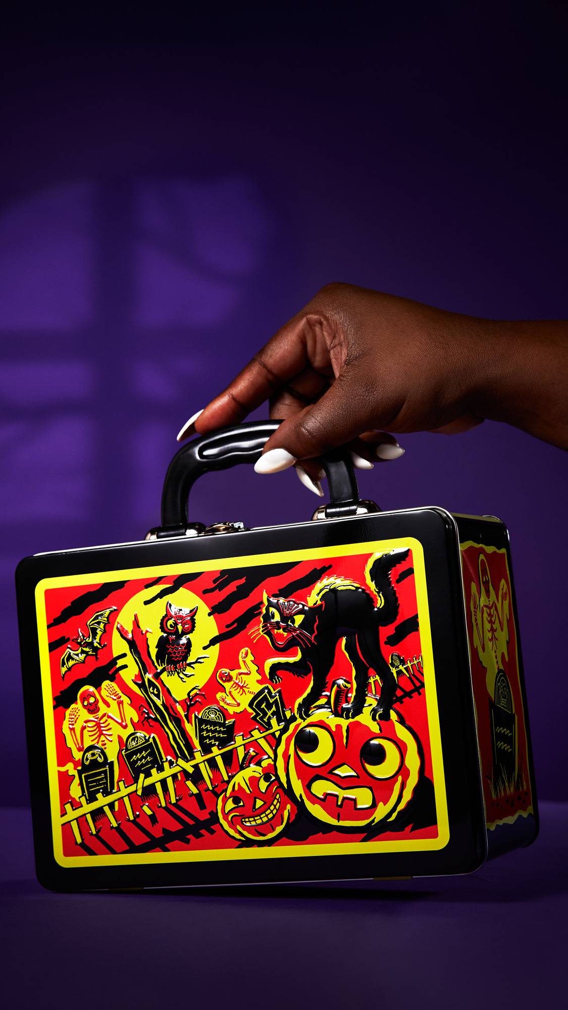 They said it couldn’t be done. You actually have leftovers from trick or treating. Quick! Hide them inside this ghoulish lunchbox, away from greedy monsters. Now for your next seemingly impossible trick — convince those of a more boring — ahem, sensible, nature that it’s perfectly fine to enjoy Halloween sweets for lunch.
