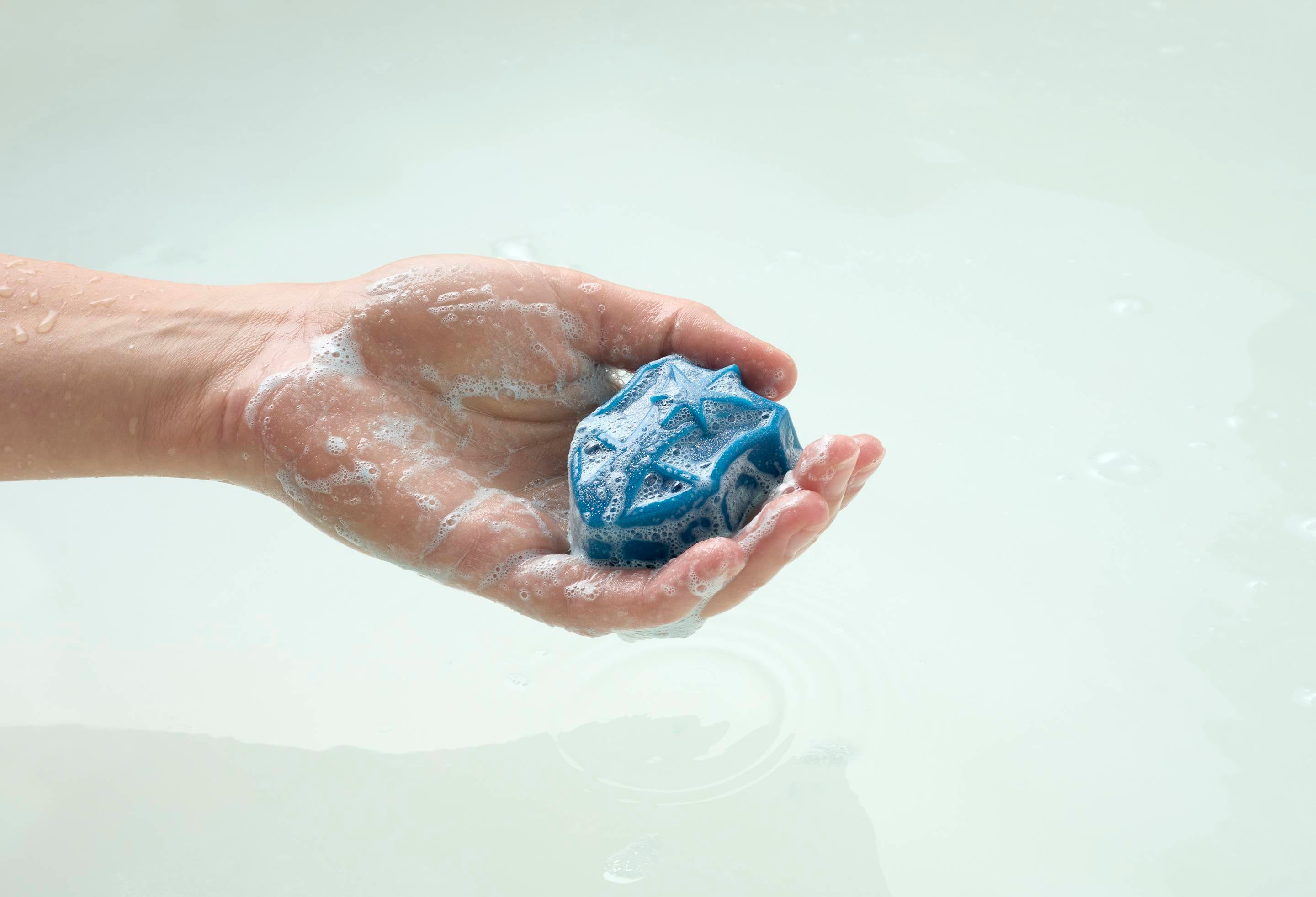 – Our proper soap is proper lovely and made the traditional way by saponification. We mix it by hand, adding in beautiful ingredients for their effects, pour it hot and let it cure before it takes pride of place by your sink. This in-house coconut soap base serves up a soap that can take heavy handling — it’s firm, bubbly and perfect for soap squidgers.